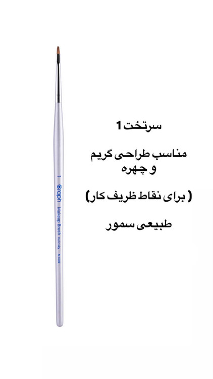 براش سرتخت ۱ گراف با دسته نقرهای و موی طبیعی سمور ظریفترین ابزار در میان براشهای سرتخت بوده و برای اجرای دقیقترین جزئیات آرایشی طراحی شده است. سایز بسیار کوچک این براش امکان کاور حرفهای نواقص پوستی، اصلاح نقاط حساس و اجرای آرایش تمیز در ریزترین بخشهای صورت را فراهم میکند.