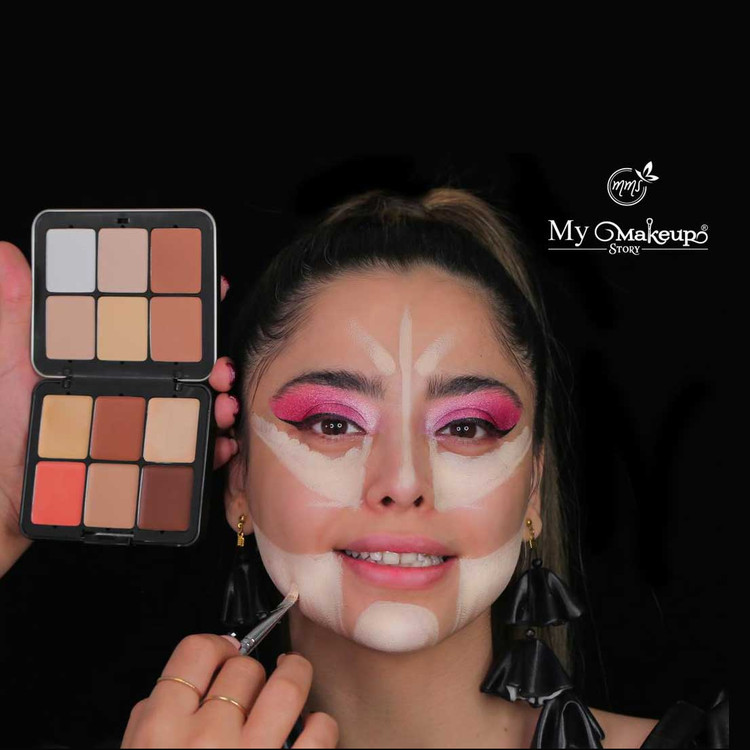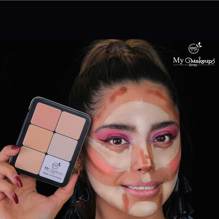 برای استفاده از قسمت کرمی : با استفاده از یک براش مخصوص کرم ، ابتدا از قسمت کرمی ، یک یا چند رنگ از پالت کانتور؛ رنگ دلخواه خود را انتخاب کرده و با حرکاتی رو به بالا روی صورت پخش کنید. شما می توانید با استفاده از کانتور رنگهای متفاوت صورت خود را روشن، یکدست کنید، سپس با براش دیگر یا بلندر میتوانید کانتور را فید کنید